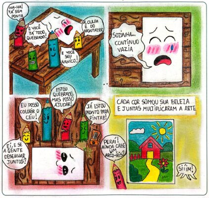Ao comentar sobre o processo criativo da obra premiada, Luana ressaltou a escolha por uma abordagem original. “Eu me inspirei em fazer algo diferente, que não utilizasse pessoas, e por isso escolhi representar a história com lápis de cor. Usei bastante criatividade, pensei em pintar bem forte e fazer detalhes bem bonitinhos”, contou a estudante.