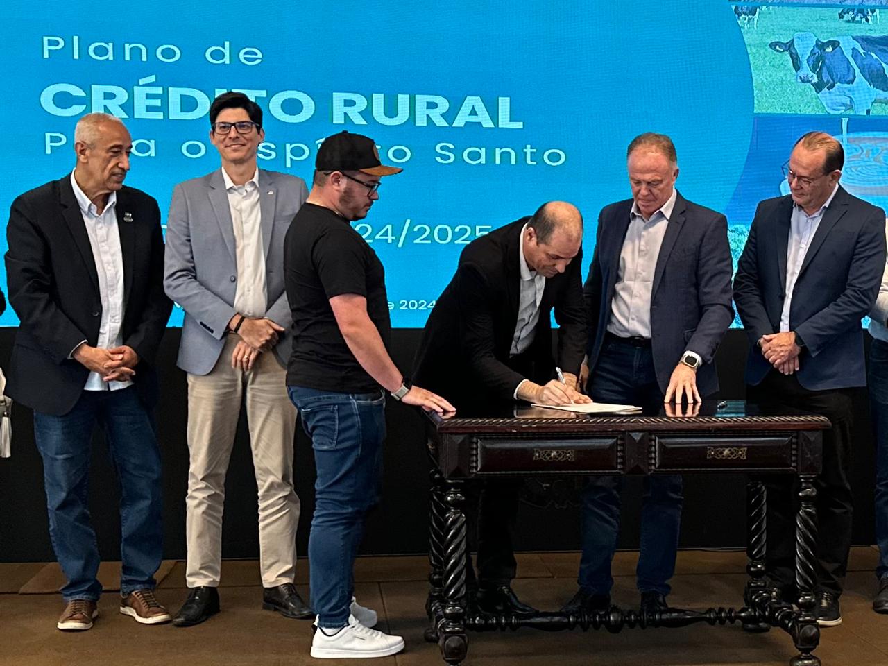 Na manhã desta terça-feira, dia 30, representantes do Sicoob participaram do evento de lançamento do Plano Safra 2024/2025 do Governo do Estado, no Palácio Anchieta. A solenidade contou com a presença do governador do Estado, Renato Casagrande, e de autoridades estaduais. Este ano, os recursos do Sistema Regional chegam a R$ 3,8 bilhões, disponíveis a produtores rurais que queiram investir em suas propriedades.